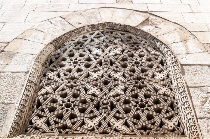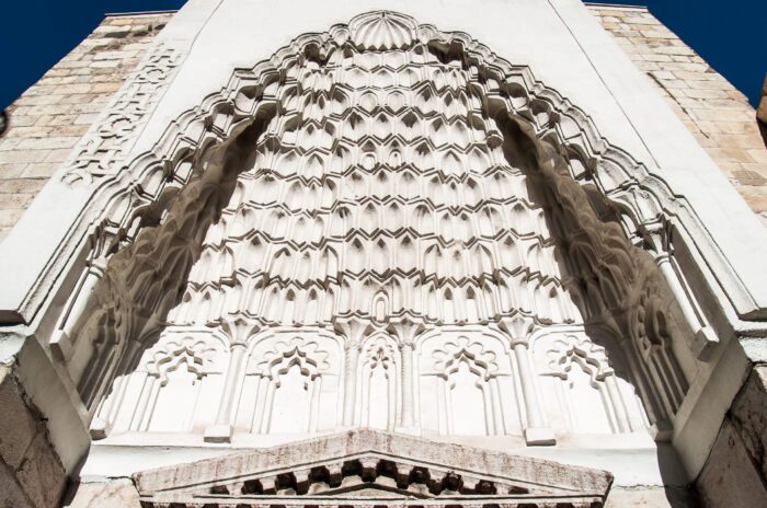 - Entrance portal: The main entrance is a masterpiece of Islamic stone carving, with geometric and floral patterns.